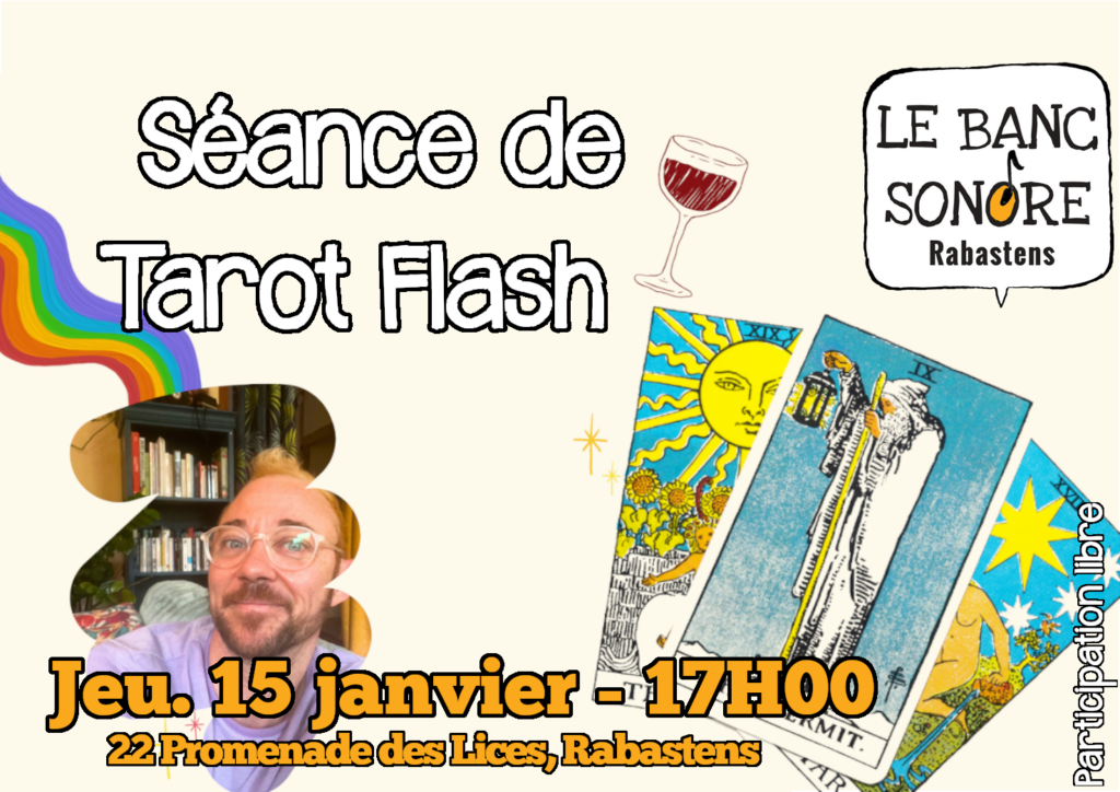 Sergio et le Banc Sonore vous accueillent pour un Tarot à 4 ou à 5 en fonction du nombre et des envies, le tout accompagné de boissons et de quoi grignoter.