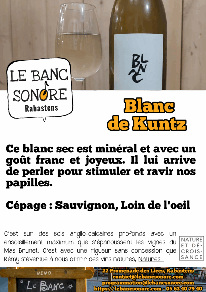 On se fera plaisir à retrouver le surprenant BLANC de Rémy KUNTZ !!!